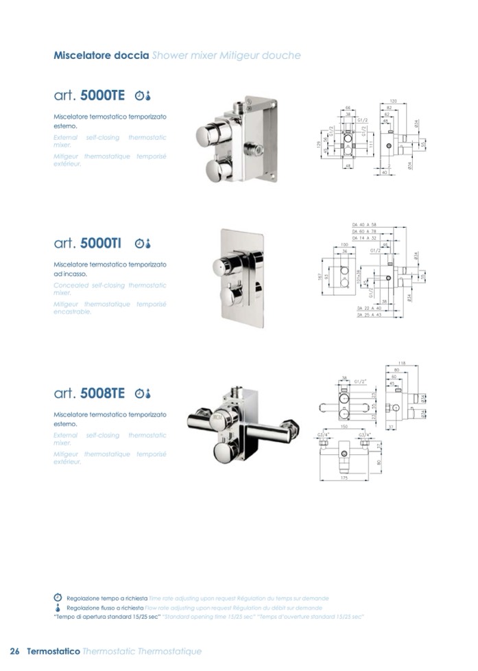 “Tempo di apertura standard 15/25 sec” “Standard opening time 15/25 sec” “Temps d’ouverture standard 15/25 sec”