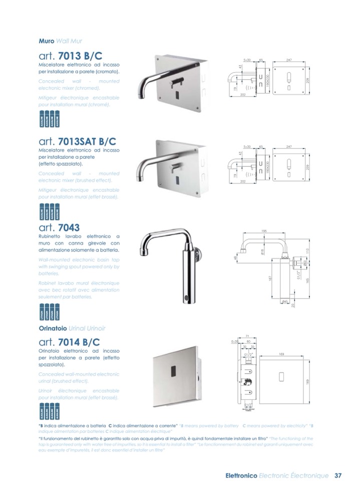“Il funzionamento del rubinetto è garantito solo con acqua priva di impurità, è quindi fondamentale installare un filtro” “The functioning of the