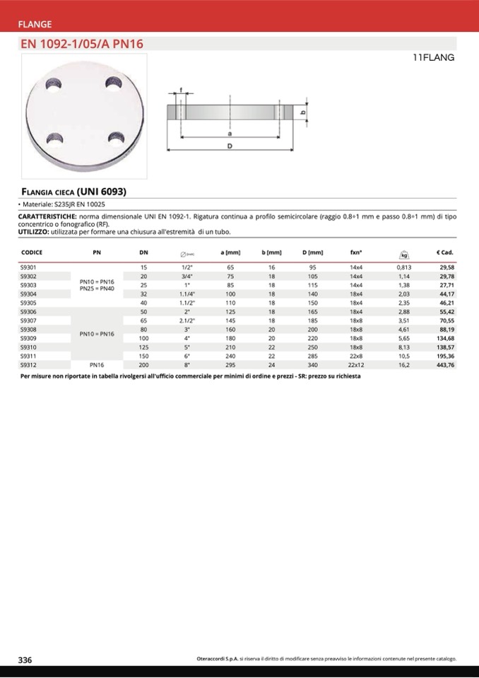 FLANGIA CIECA (UNI 6093)