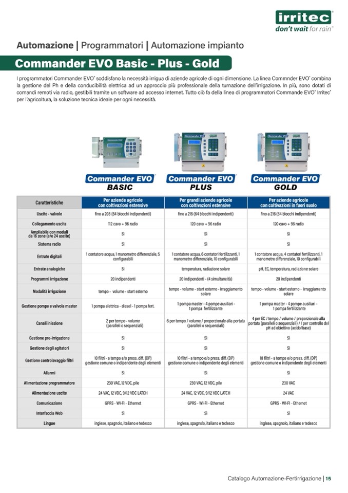soddisfano la necessità irrigua di aziende agricole di ogni dimensione. La linea Commnder EVO