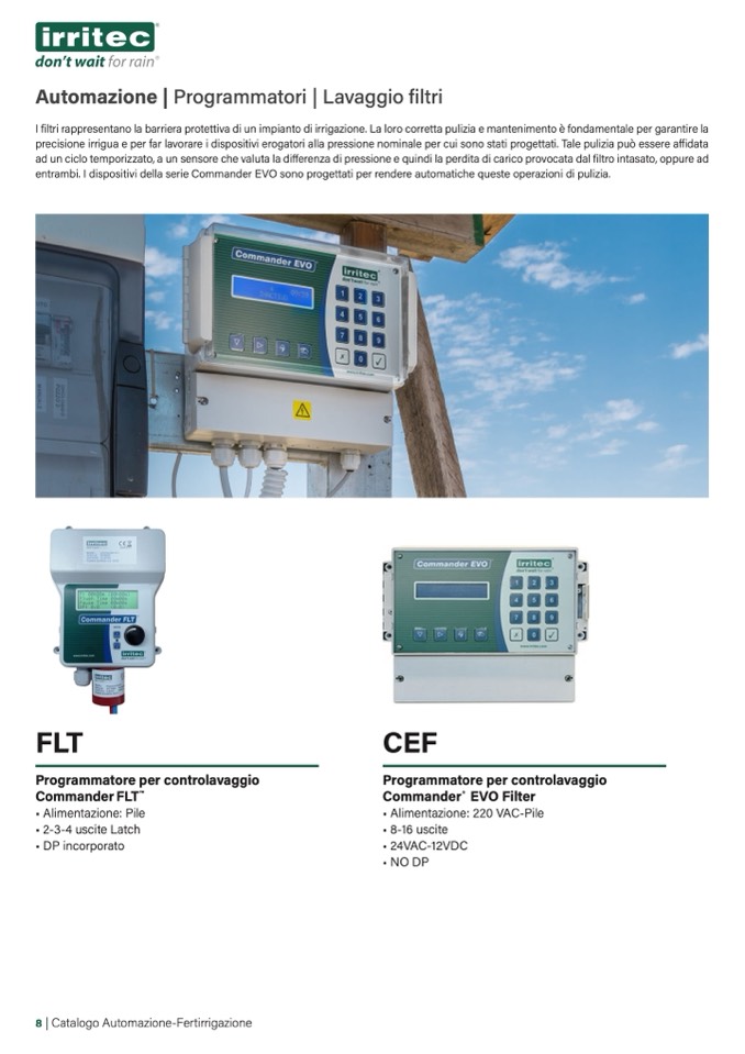 precisione irrigua e per far lavorare i dispositivi erogatori alla pressione nominale per cui sono stati progettati. Tale pulizia può essere affidata