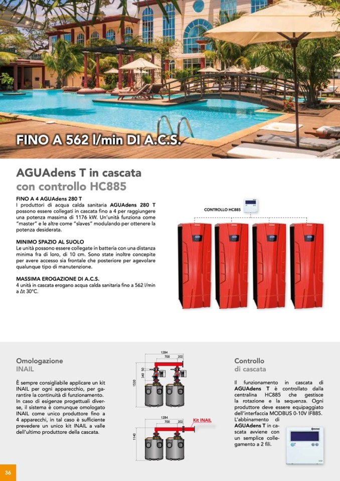 4 unità in cascata erogano acqua calda sanitaria fino a 562 l/min