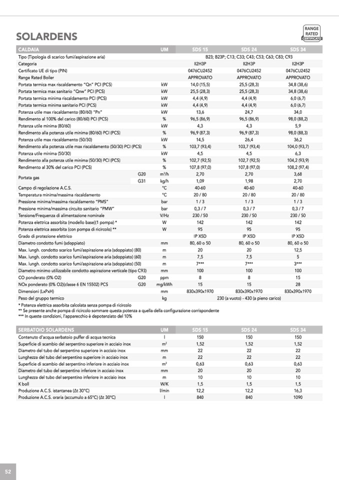 ** Se presente anche pompa di ricircolo sommare questa potenza a quella della configurazione corrispondente