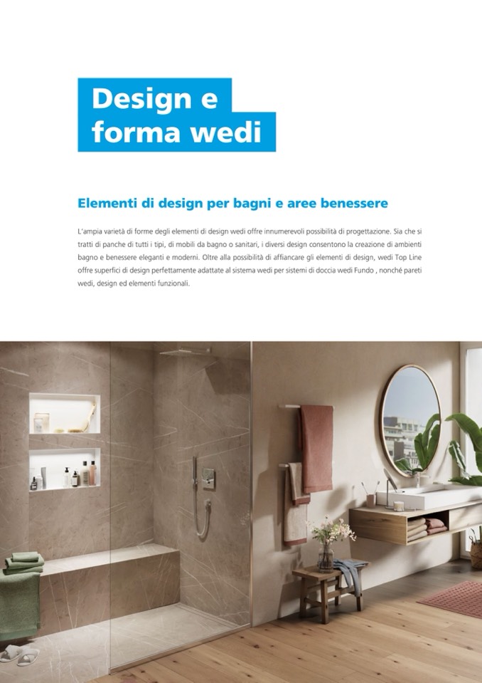 L‘ampia varietà di forme degli elementi di design wedi offre innumerevoli possibilità di progettazione. Sia che si