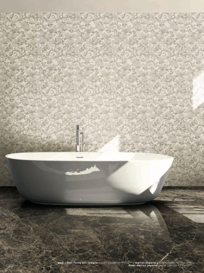 wall: I filati Funny Girl vaniglia matte 120x280 471/4”x1101/4” / marron imperial glossy 120x280 471/4”x1101/4