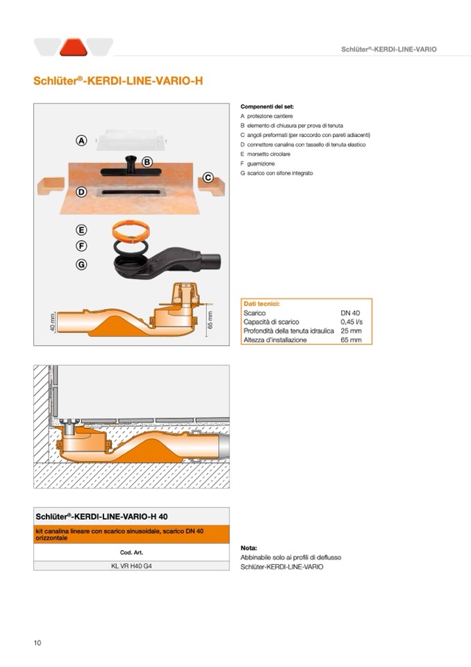 kit canalina lineare con scarico sinusoidale, scarico DN 40