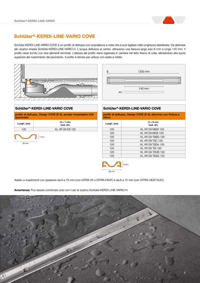 Avvertenza: Può essere combinato solo con il set di scarico Schlüter-KERDI-LINE-VARIO-H.