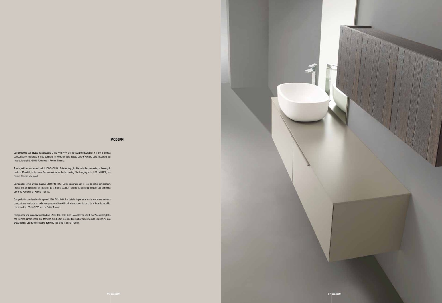 Komposition mit Aufsatzwaschbecken B180 T45 H40. Eine Besonderheit stellt die Waschtischplatte