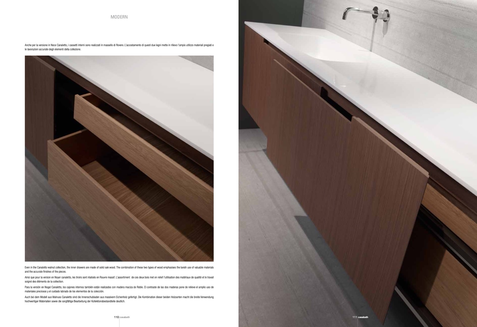 Para la versión en Nogal Canaletto, los cajones internos también están realizados con madera maciza de Roble. El contraste de las dos maderas pone de relieve el amplio uso de