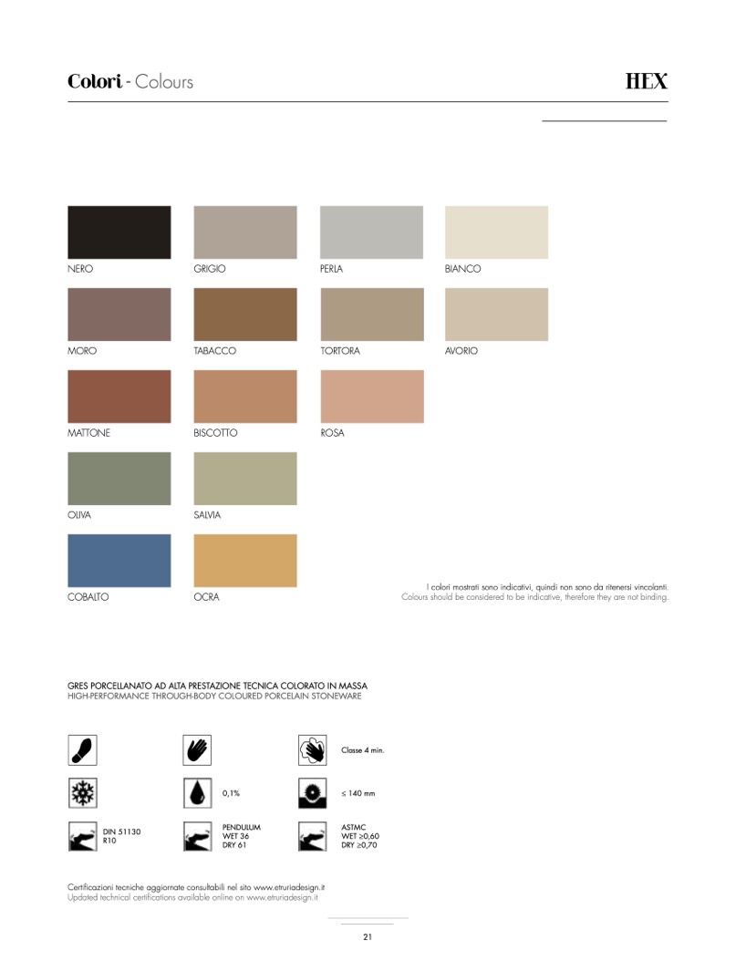 Certificazioni tecniche aggiornate consultabili nel sito www.etruriadesign.it