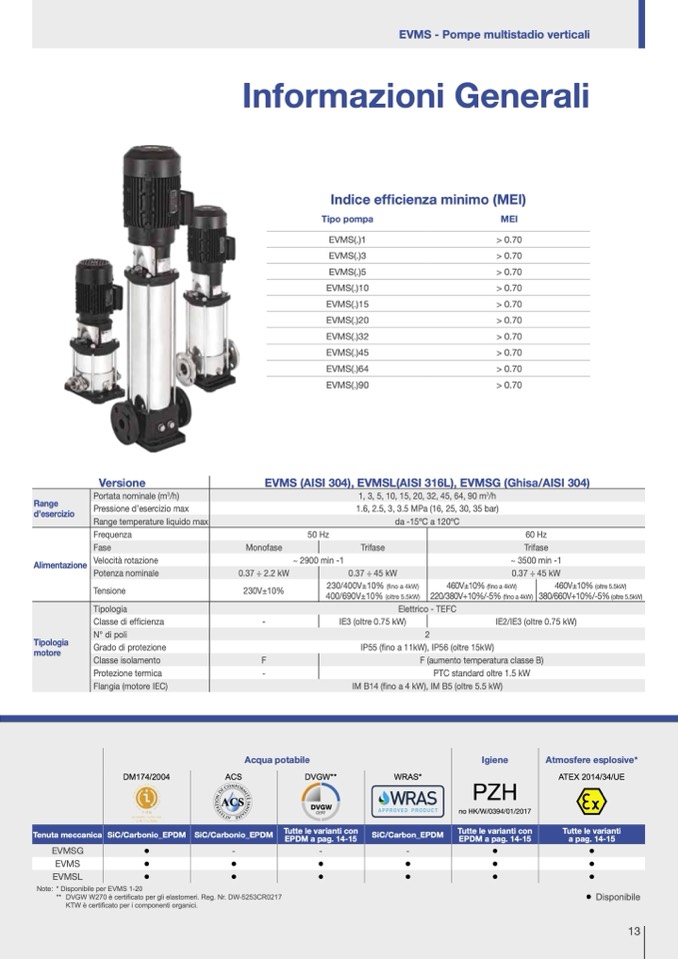 EVMS (AISI 304), EVMSL(AISI 316L), EVMSG (Ghisa/AISI 304)