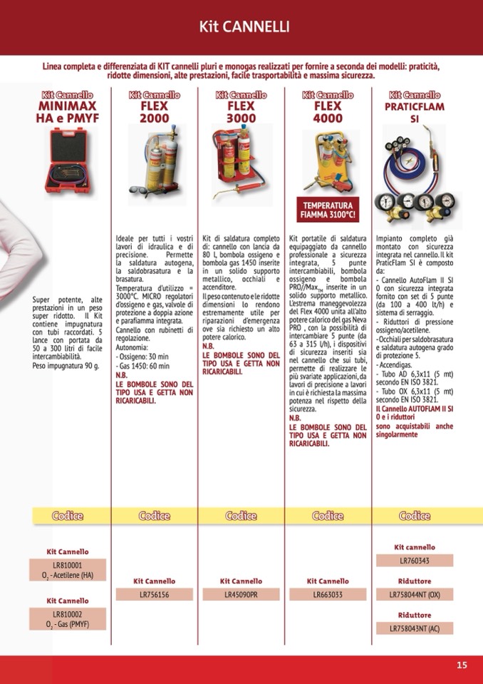 Linea completa e differenziata di KIT cannelli pluri e monogas realizzati per fornire a seconda dei modelli: praticità,