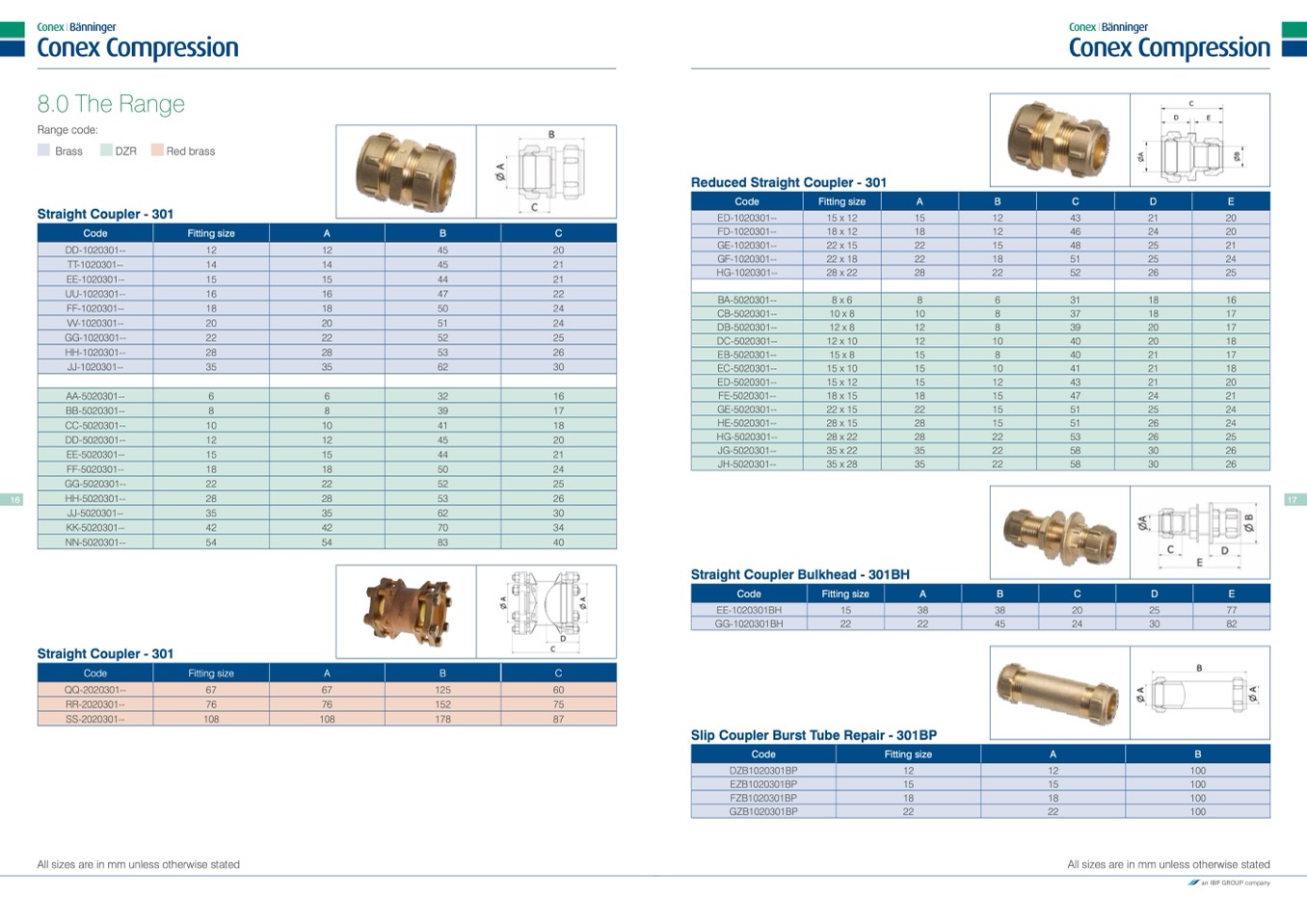 All sizes are in mm unless otherwise stated