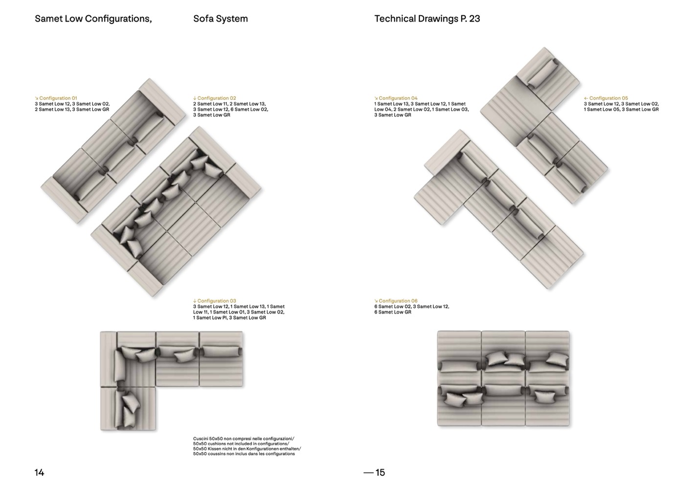 50x50 cushions not included in configurations/