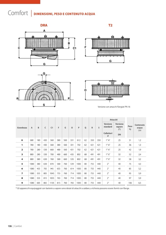* Gli apparecchi equipaggiati con batterie a vapore sono dotati di attacchi a saldare; a richiesta possono essere forniti con flange.