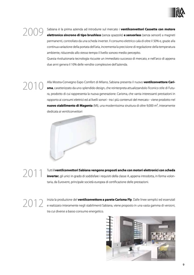 Sabiana è la prima azienda ad introdurre sul mercato i ventilconvettori Cassette con motore