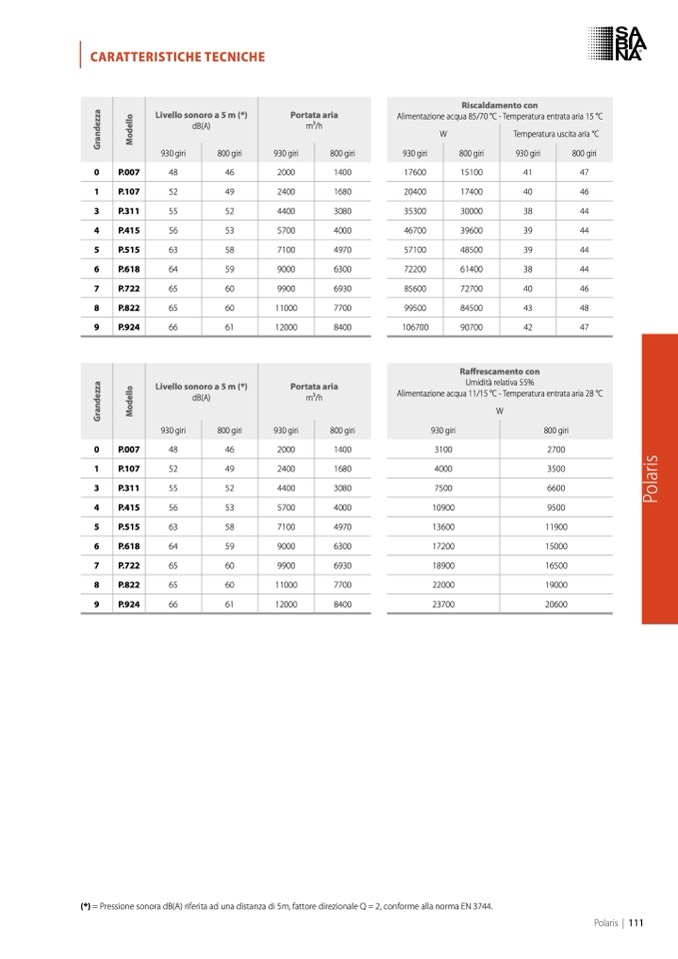 (*) = Pressione sonora dB(A) riferita ad una
