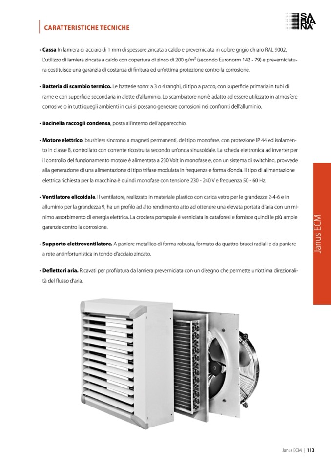 • Batteria di scambio termico. Le batterie sono: a 3 o 4 ranghi, di tipo a pacco, con super
