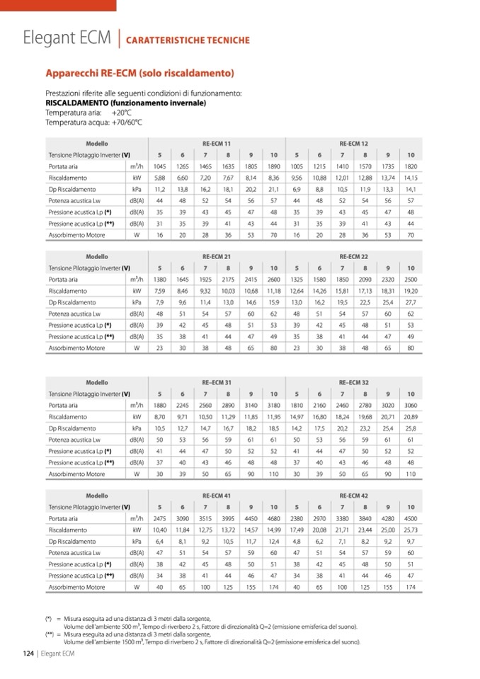 (**) = Misura eseguita ad una distanza di 3 metri dalla sorgente,