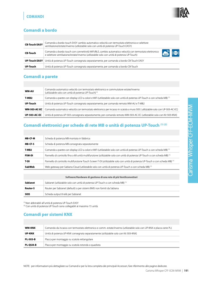 ù dettagliate sui Comandi e per la lista completa dei principali Accessori, fare riferimento alle pagine dedicate.