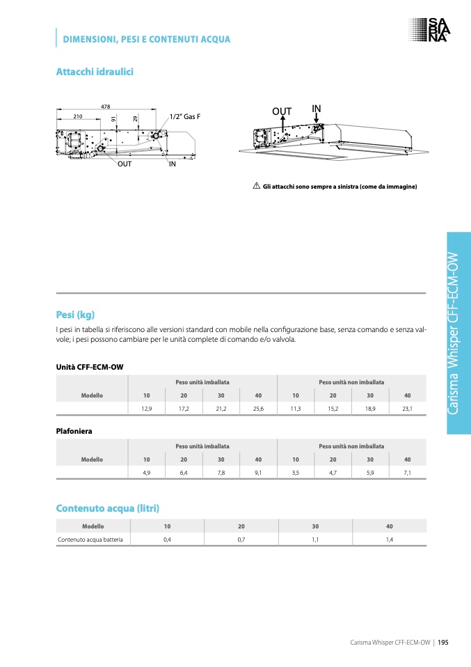 I pesi in tabella si riferiscono alle versioni standard con mobile nella configurazione base, senza comando e senza val-
