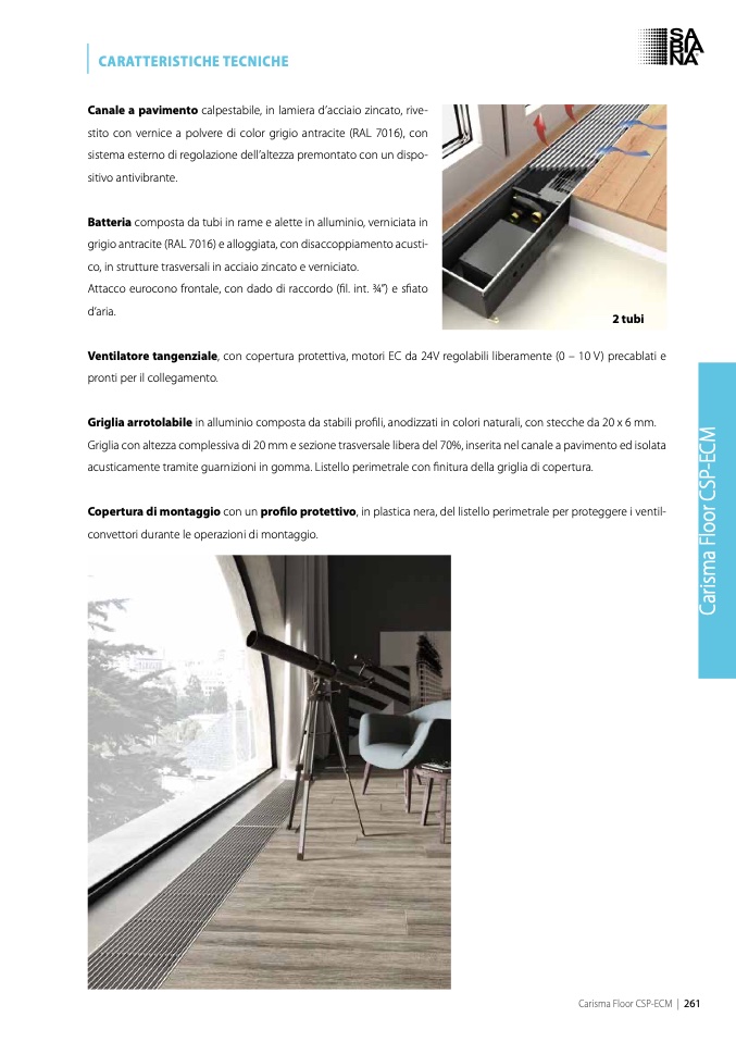 acusticamente tramite guarnizioni in gomma. Listello perimetrale con finitura della griglia di copertura.