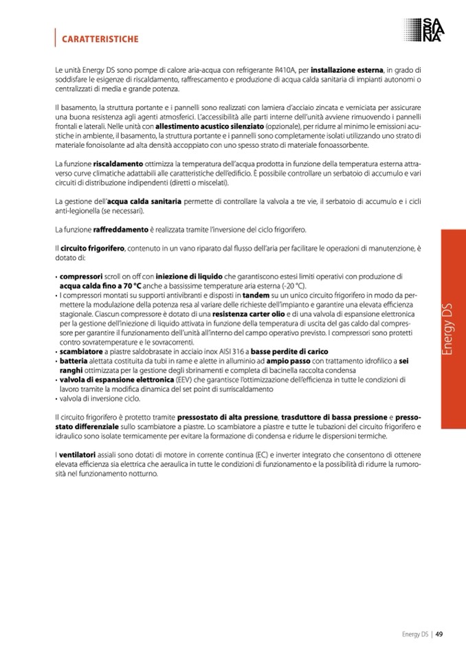 Le unità Energy DS sono pompe di calore aria-acqua con refrigerante R410A, per installazione esterna, in grado di