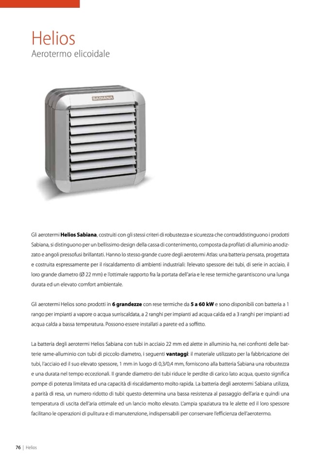 Gli aerotermi Helios Sabiana, costruiti con gli stessi criteri di robustezza e sicurezza che contraddistinguono i prodotti