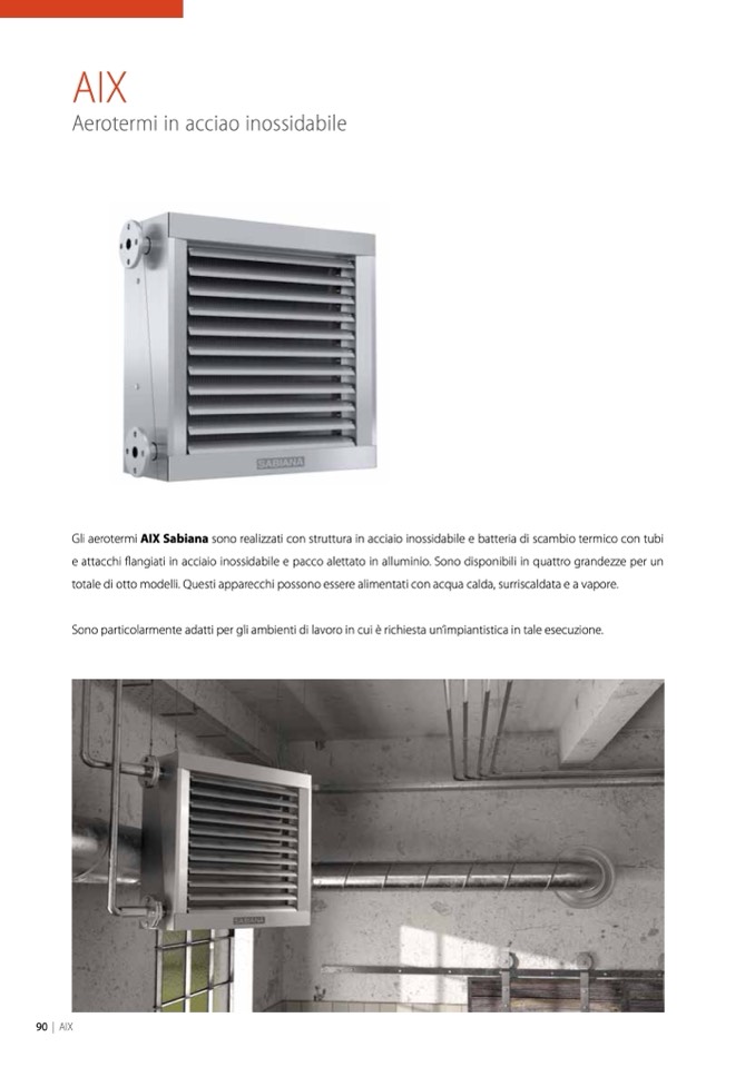 Gli aerotermi AIX Sabiana sono realizzati con struttura in acciaio inossidabile e batteria di scambio termico con tubi
