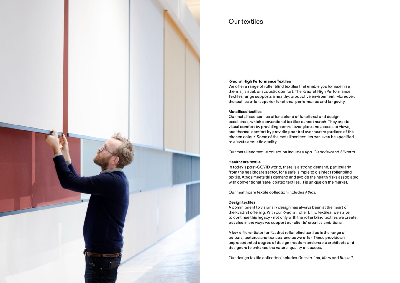 the Kvadrat offering. With our Kvadrat roller blind textiles, we strive