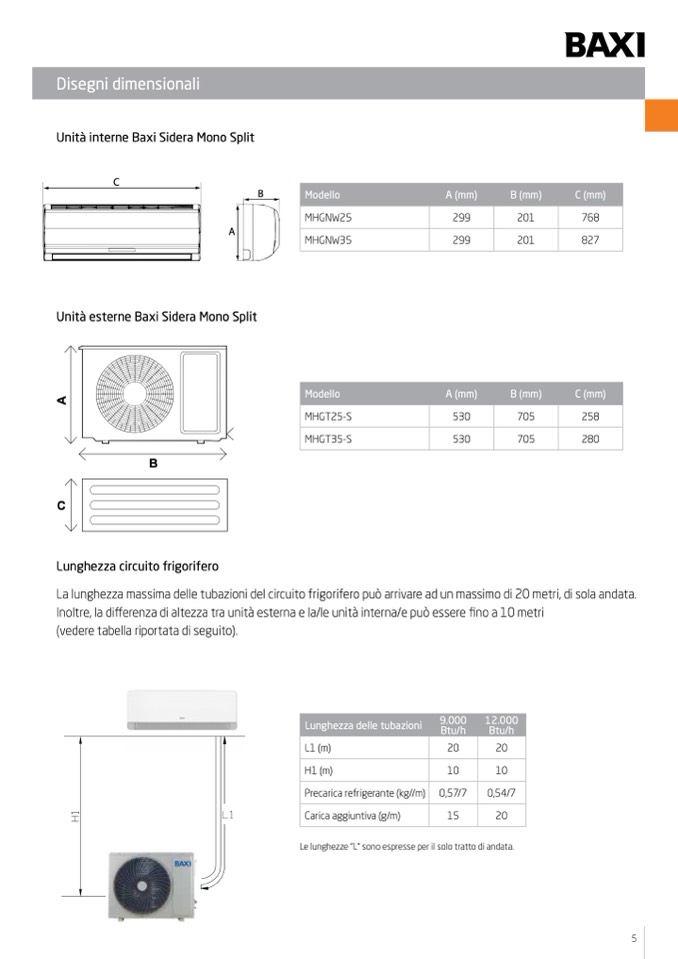 La lunghezza massima delle tubazioni del circuito frigorifero può arrivare ad un massimo di 20 metri, di sola andata.