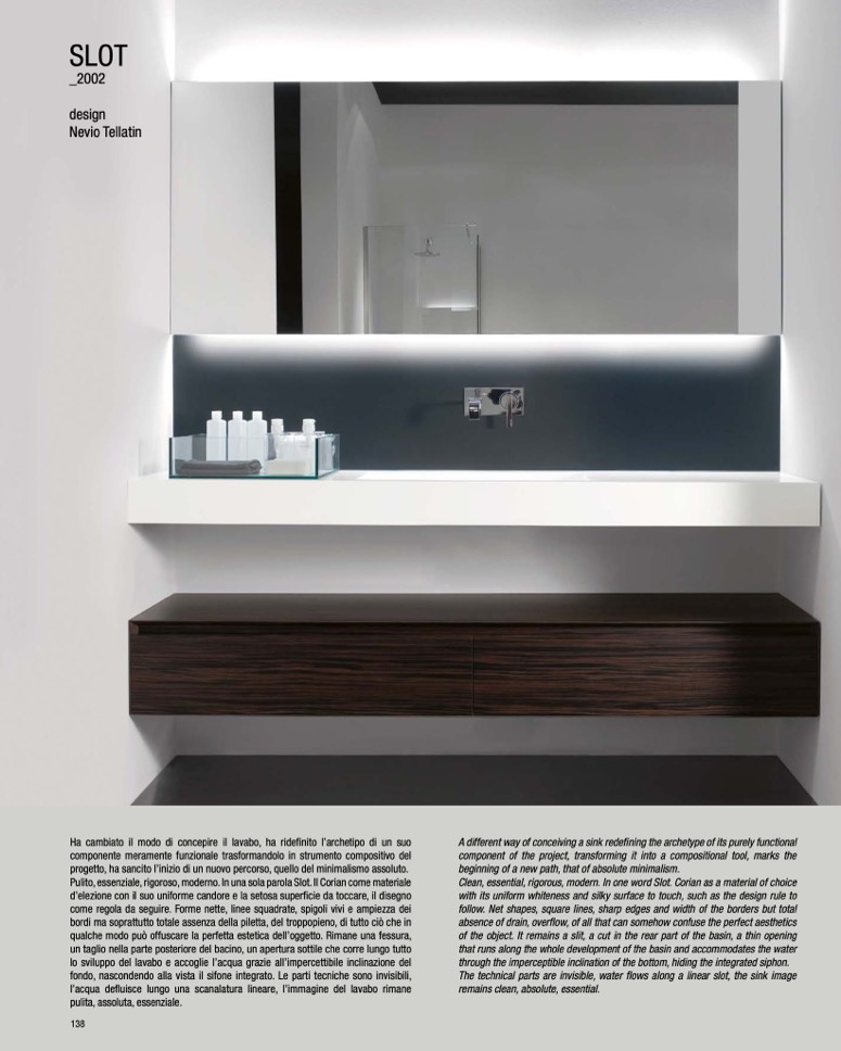 Clean, essential, rigorous, modern. In one word Slot. Corian as a material of choice