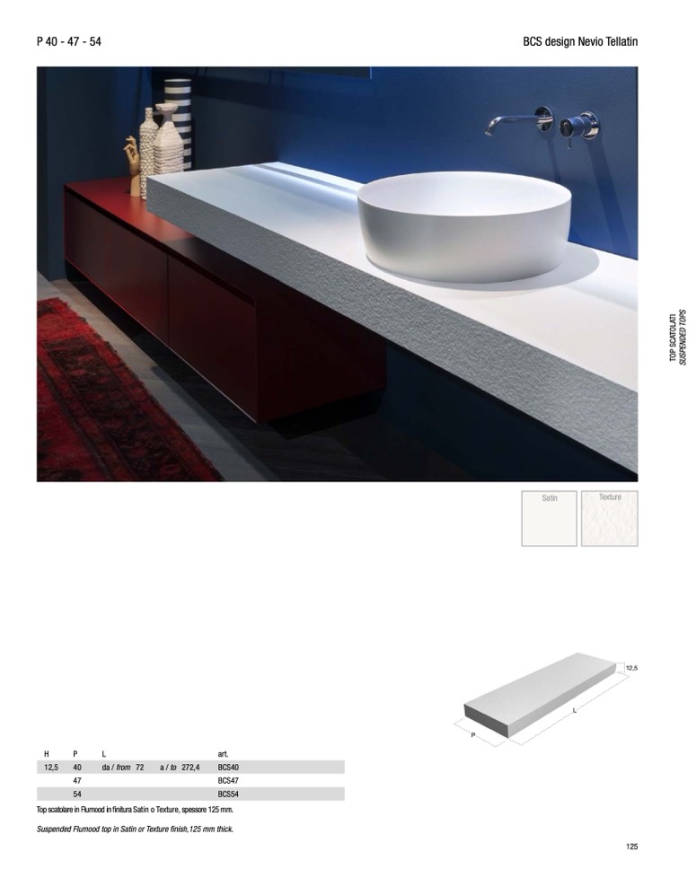 Top scatolare in Flumood in finitura Satin o Texture, spessore 125 mm.