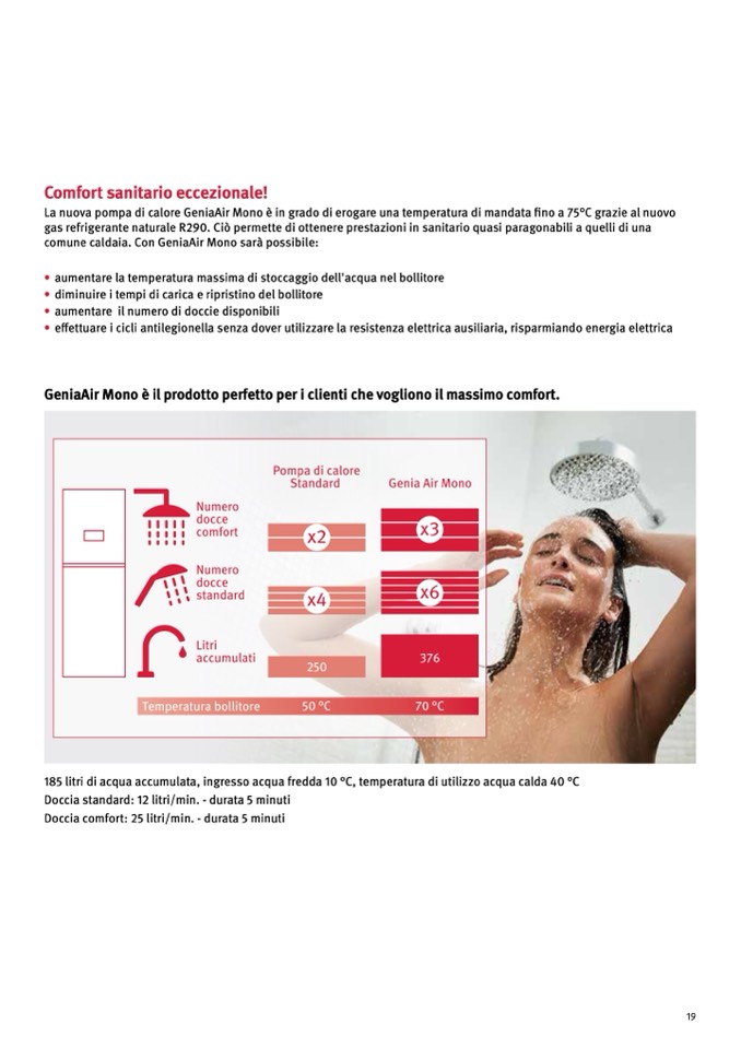 Doccia comfort: 25 litri/min. - durata 5 minut