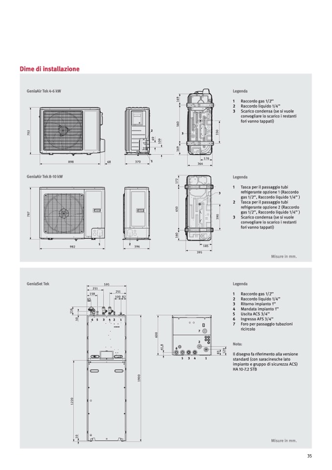 gas 1/2’’, Raccordo liquido 1/4’’ )