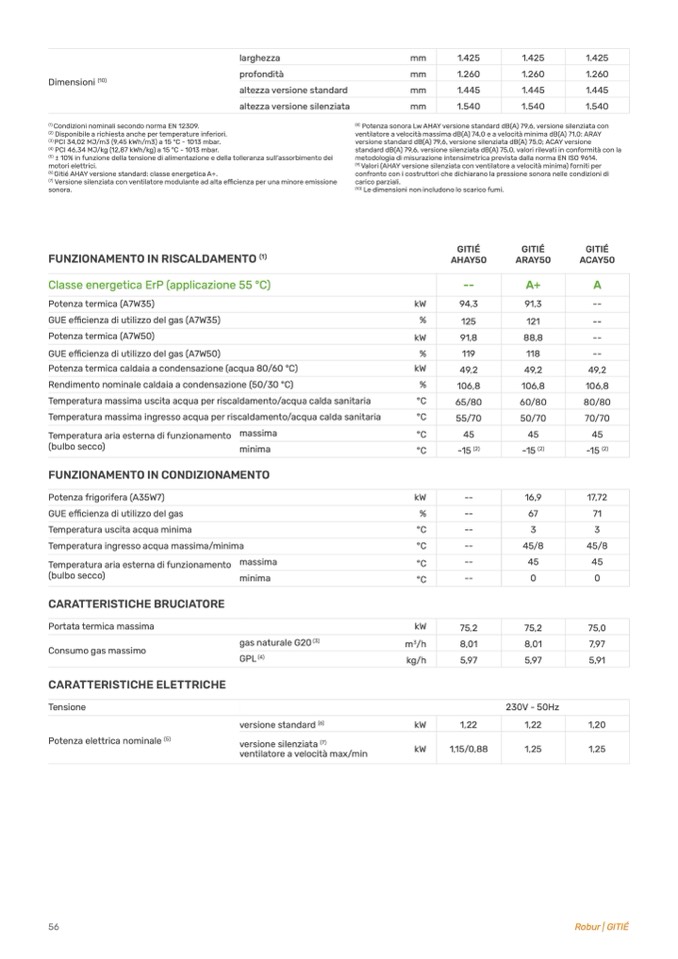 Condizioni nominali secondo norma EN 12309.