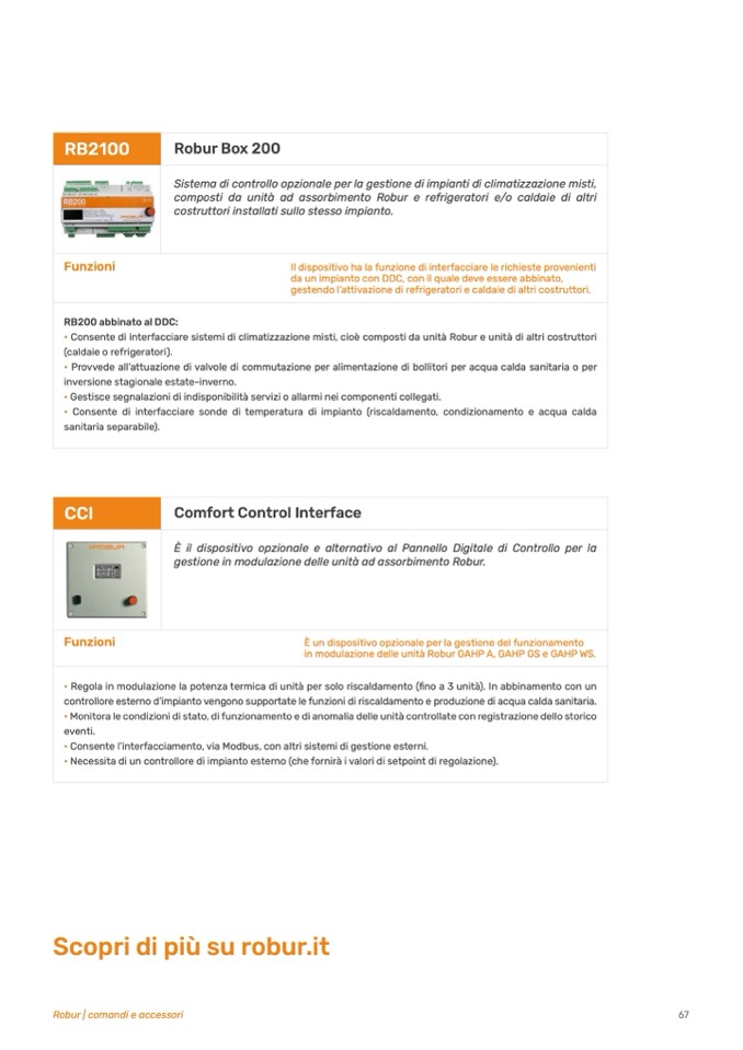 • Consente di interfacciare sistemi di climatizzazione misti, cioè composti da unità Robur e unità di altri costruttori