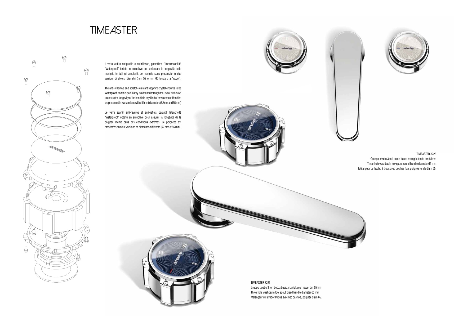 Gruppo lavabo 3 fori bocca bassa maniglia con razze dm 65mm