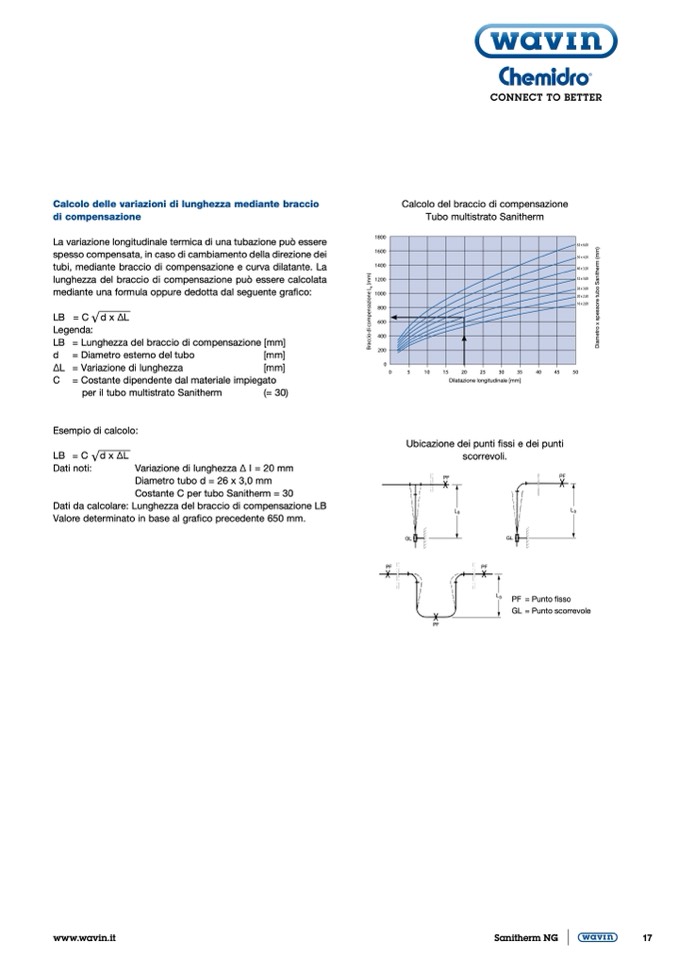 tubi, mediante braccio di compensazione e curva dilatante. La