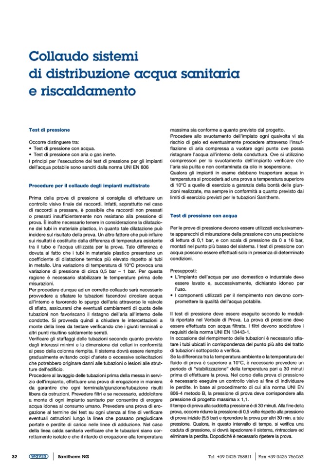 limiti di esercizio previsti per le tubazioni Sanitherm.