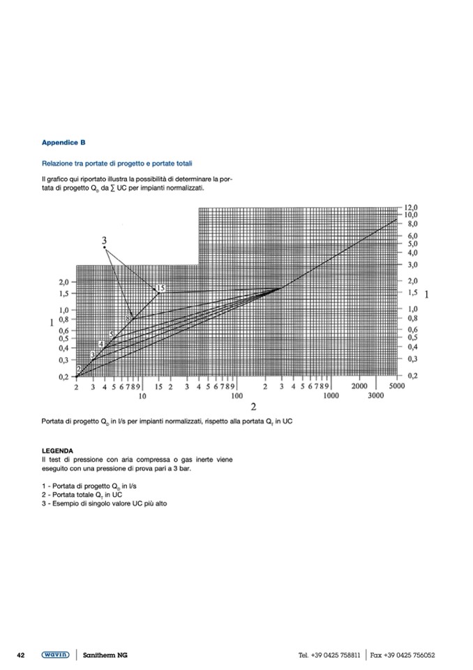 in l/s per impianti normalizzati, rispetto alla portata Q