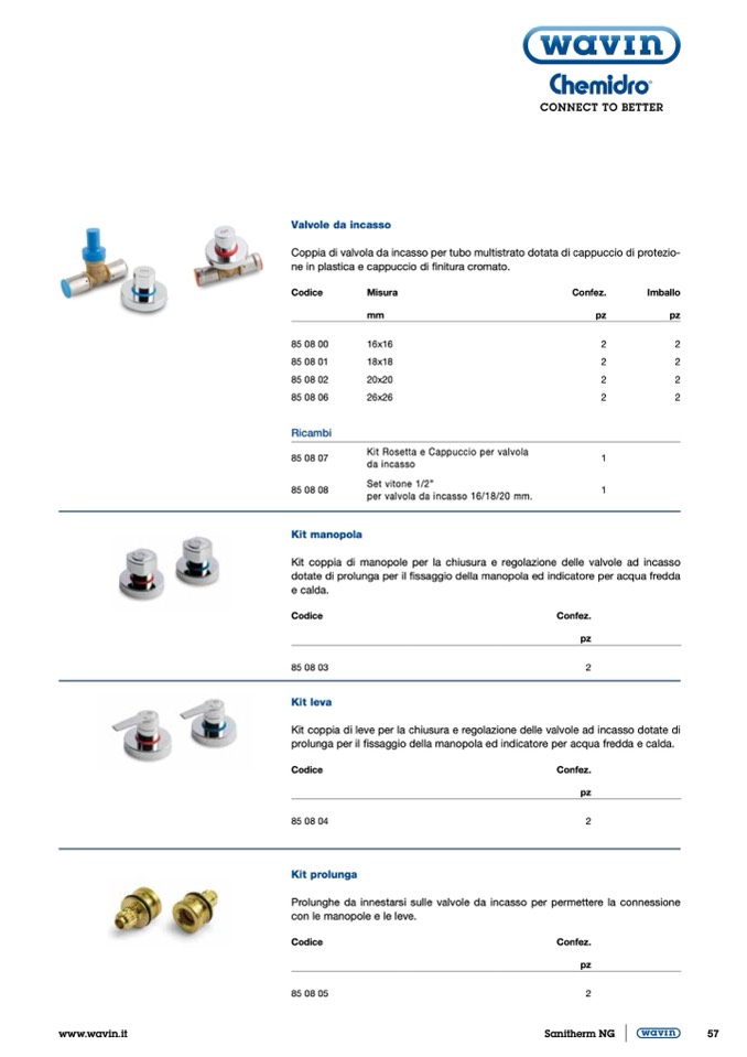 Prolunghe da innestarsi sulle valvole da incasso per permettere la connessione