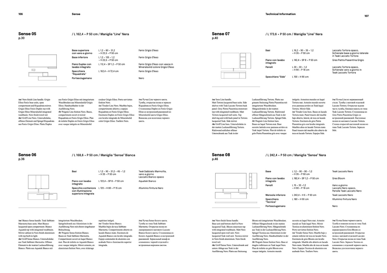 / L 242,4 × P 50 cm / Maniglia “Sense” Nera