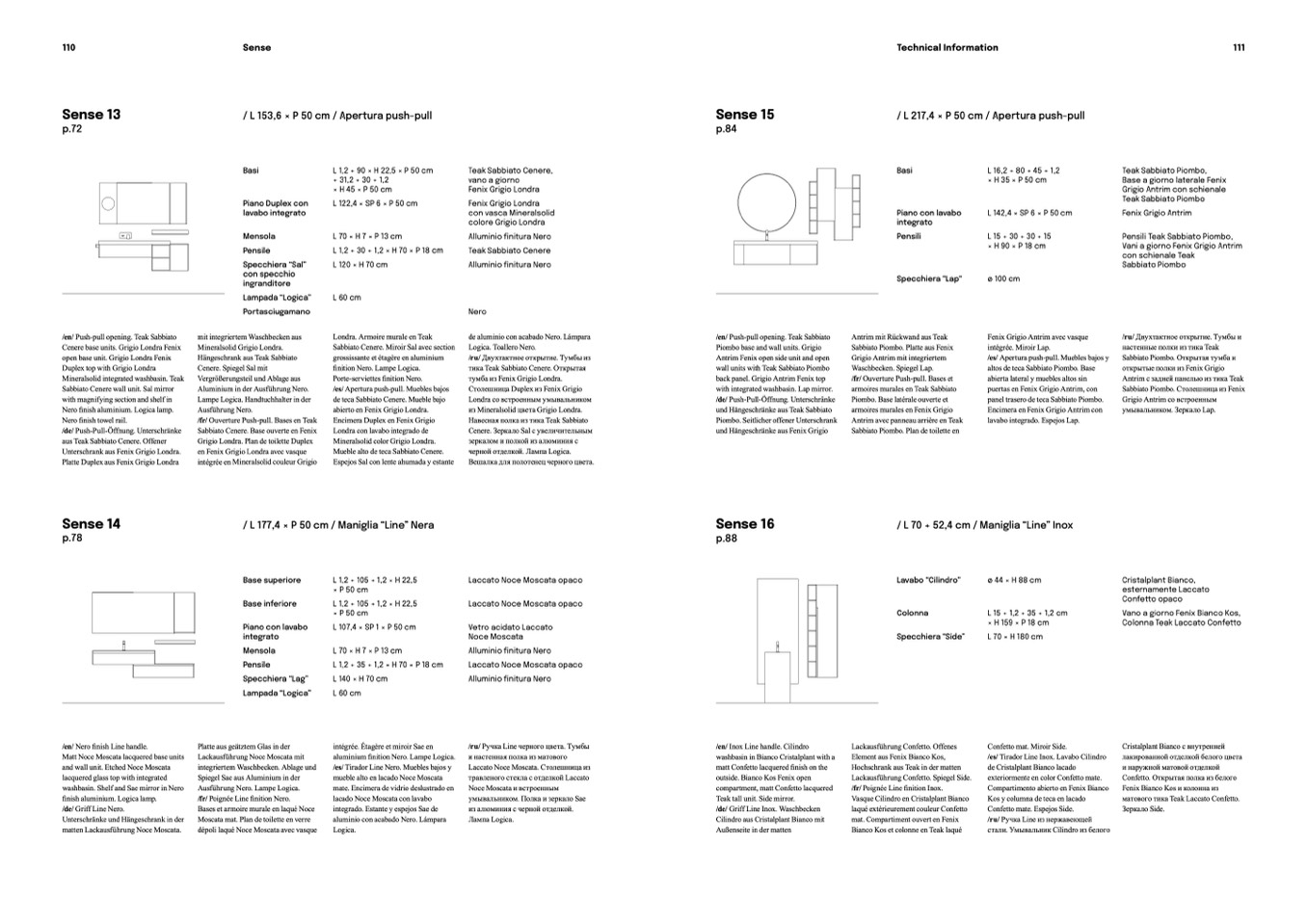/ L 217,4 × P 50 cm / Apertura push-pull