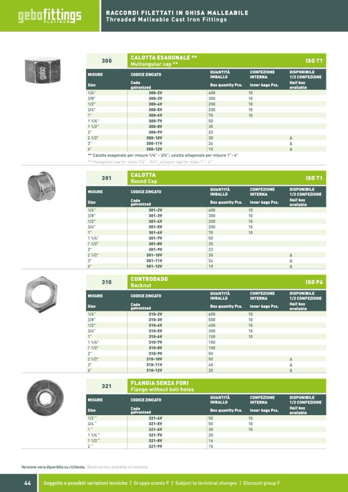 ** Calotta esagonale per misure 1/4” - 3/4”; calotta ottagonale per misure 1”- 4”