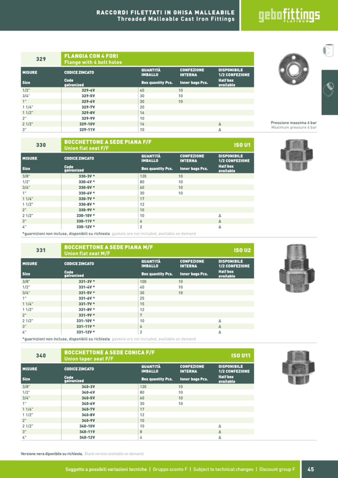 *guarnizioni non incluse, disponibili su richiesta gaskets are not included, available on demand