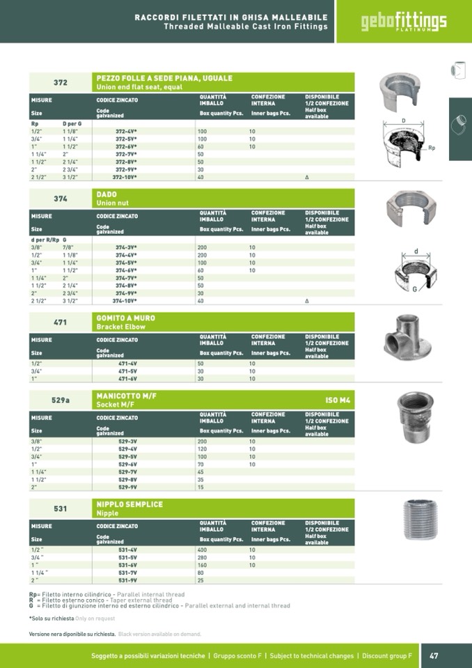 Rp= Filetto interno cilindrico - Parallel internal thread