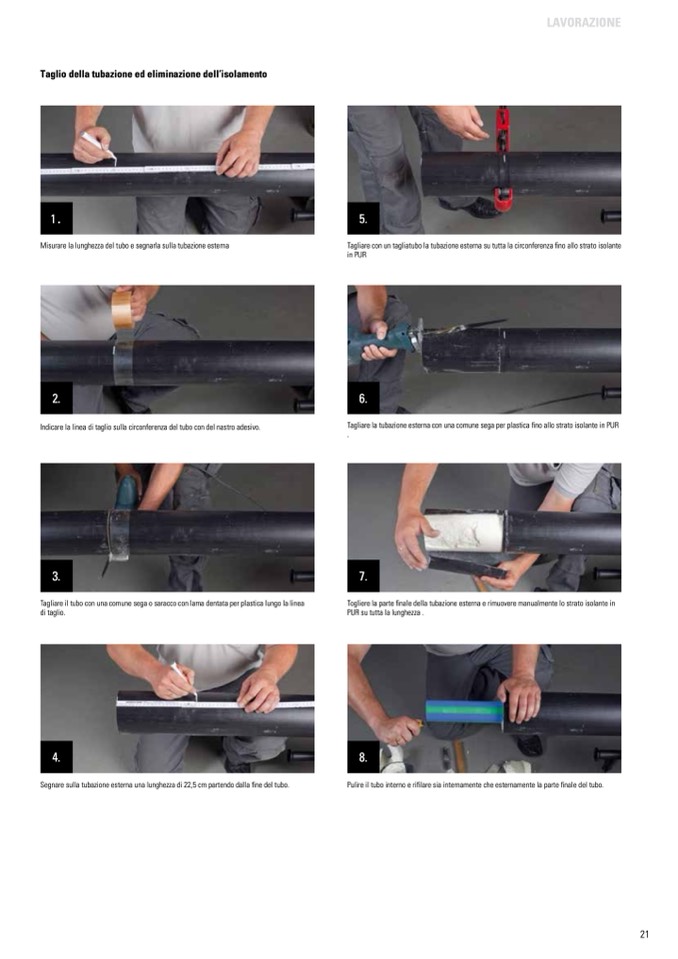 Tagliare la tubazione esterna con una comune sega per plastica fino allo strato isolante in PUR