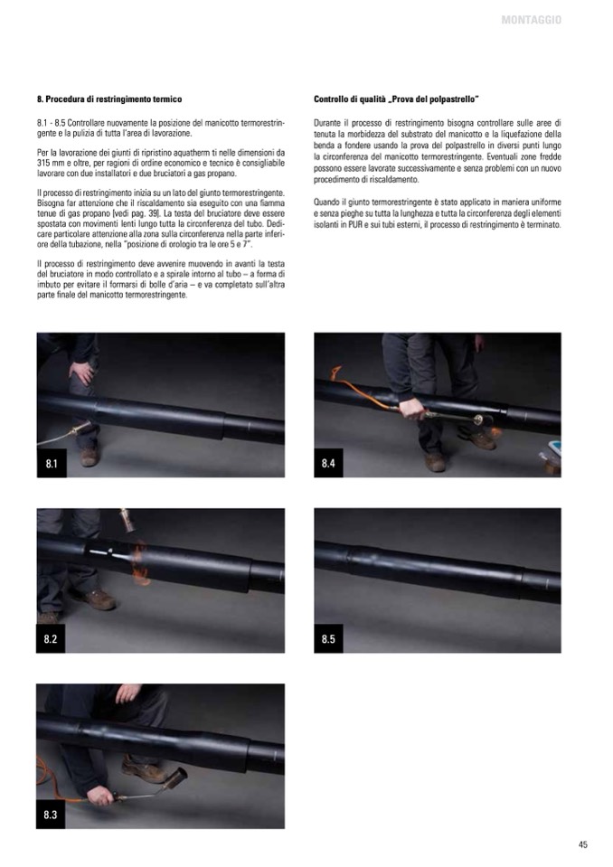 8.1 - 8.5 Controllare nuovamente la posizione del manicotto termorestrin-