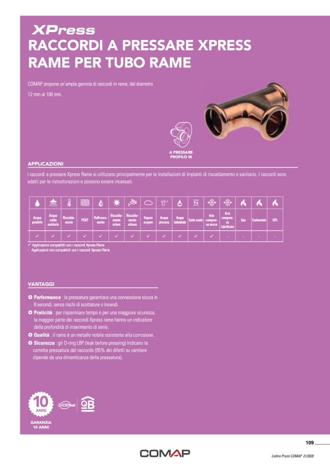 COMAP propone un’ampia gamma di raccordi in rame, dal diametro